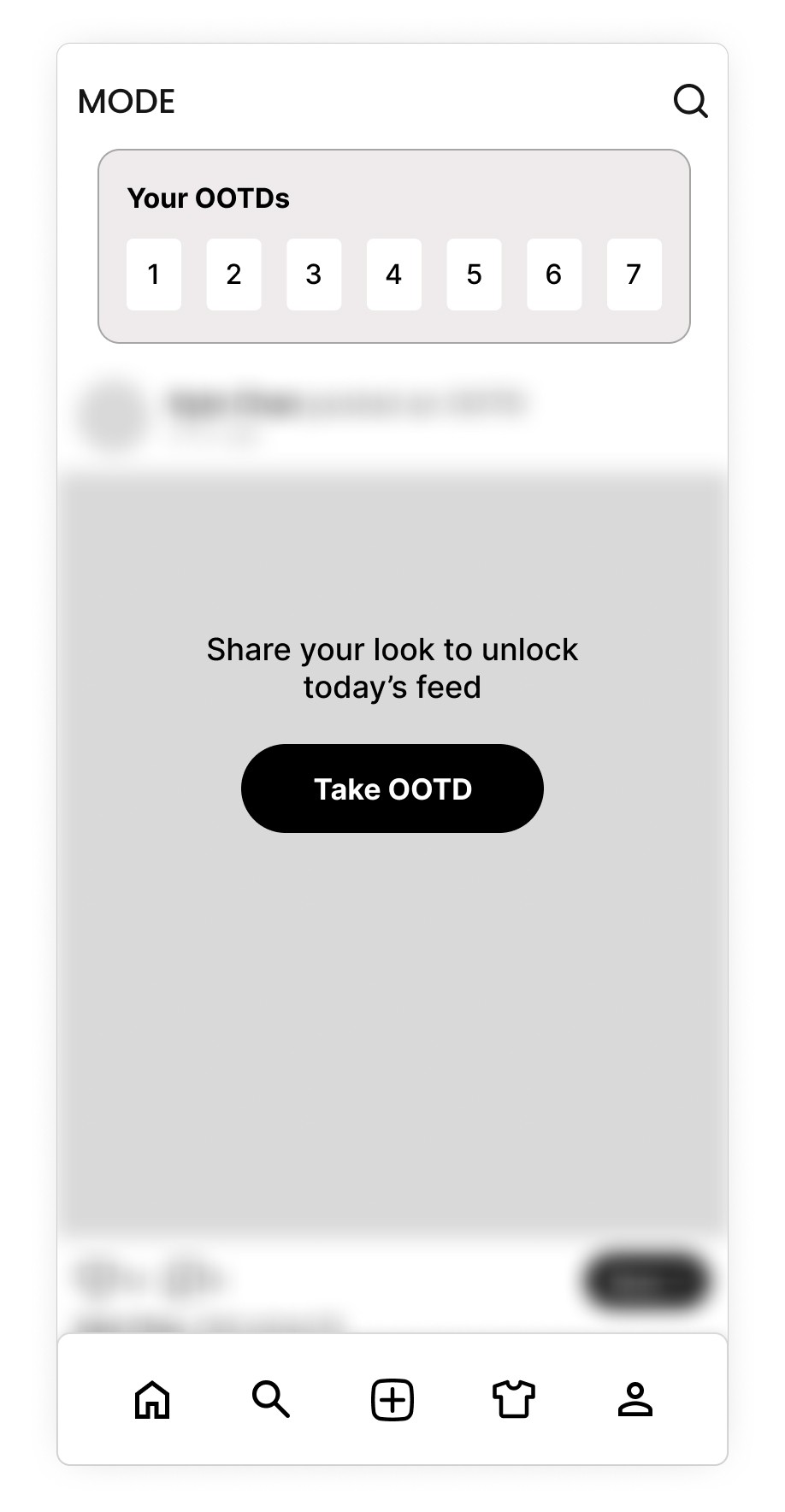 We introduced an additional layer of interactivity by requiring users to post their own Outfit of the Day (OOTD) before viewing others for the day.