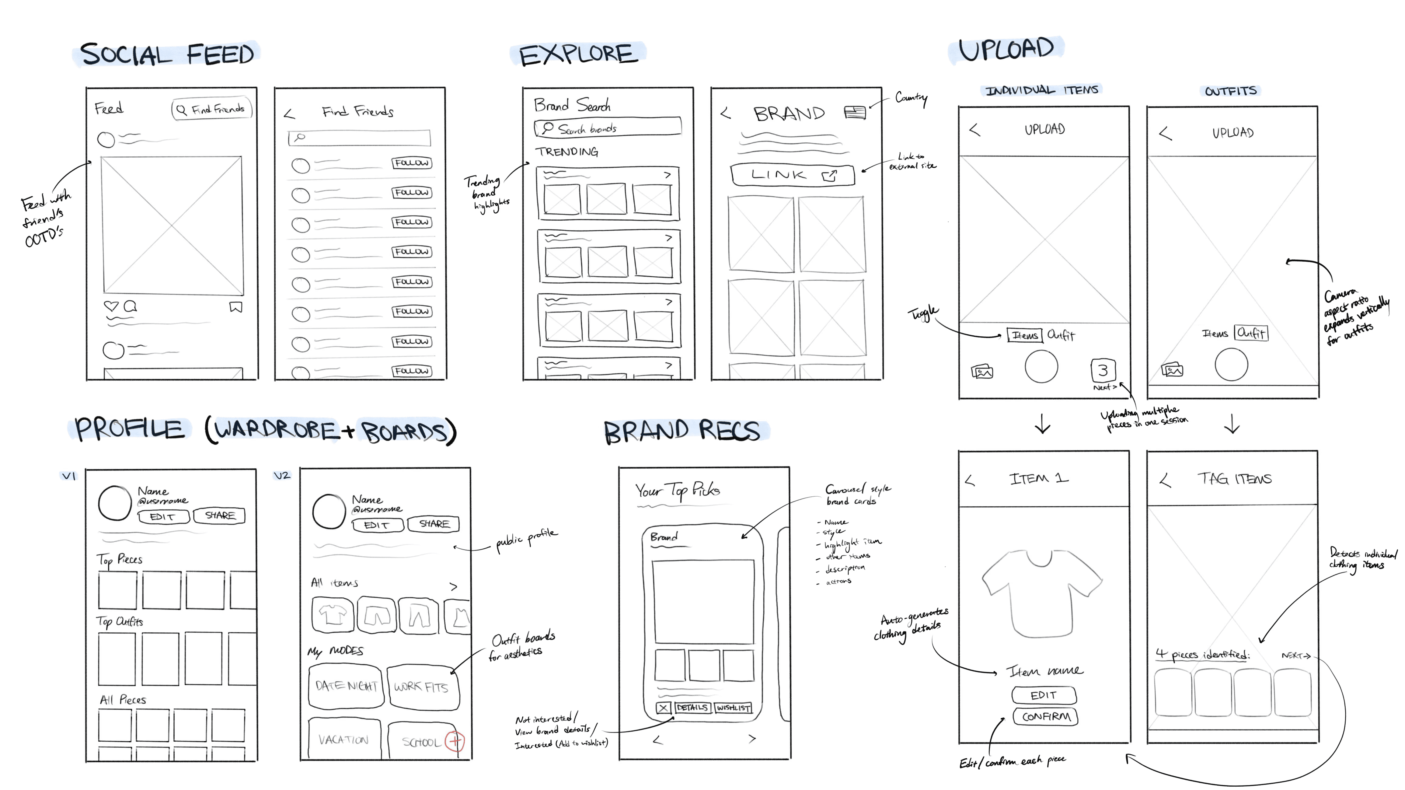 After 34 user interviews across the team with college students, fashion designers, influencers, working adults, and CS outliers...