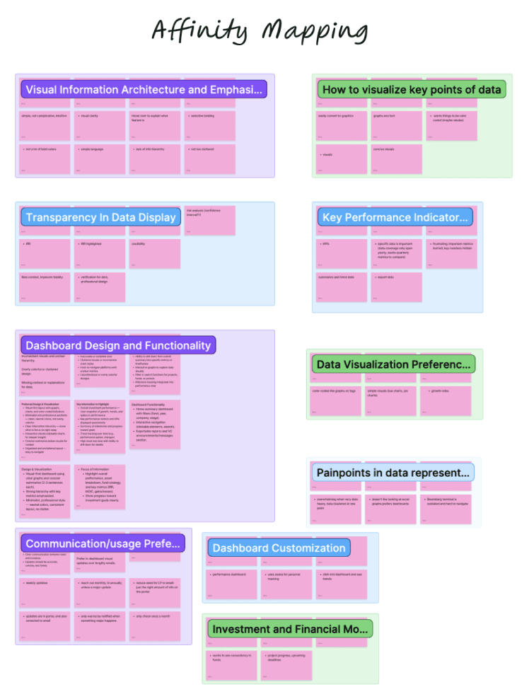 After leading ux research and early vision sprints for the 0-1 product, I specifically honed in on designing a comprehensive onboarding experience + investment and portfolio fund-monitoring tool, as we worked with our client throughout the semester.